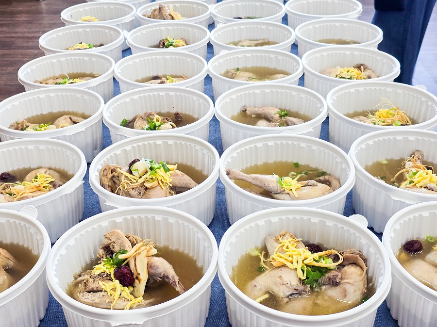 이번 행사에서는 자원봉사자분들이 직접 조리한 삼계탕 600그릇을 음료, 부채, 여름이불과 함께