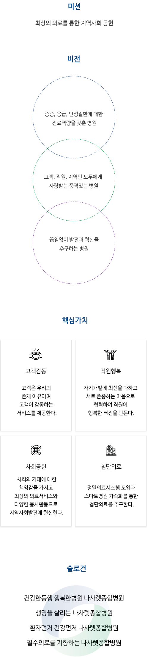 미션·비전·핵심가치·슬로건 나사렛종합병원 | 대표: 김대영 | 사업자번호: 503-90-59791 전화번호: 053-643-1400 | 팩스: 053-643-1405 주소: 대구광역시시 달서구 월배로 97(진천동) 메일: master@nazareth.co.kr Copyright 2020. NAZARETH ALL RIGHTS RESERVED.