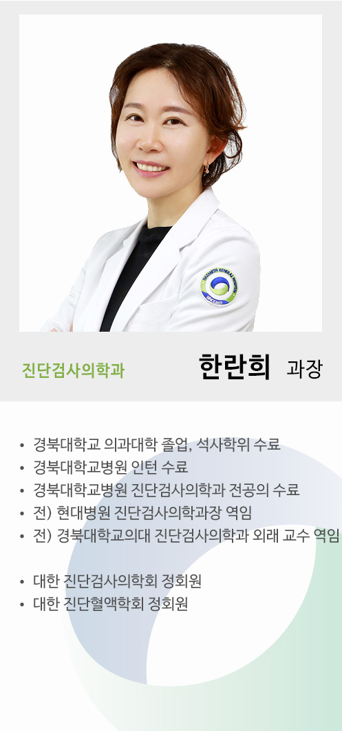 진단검사의학과에서는 혈액, 골수, 혈장, 혈청, 소변, 대변, 흉수, 심낭액, 복수, 관절액, 뇌척수액, 양수, 정액 및 조직 등 각종 인체에서 유래하는 각종 검체에 대하여 적절한 검사를 시행함으로써 질병의 선별 및 조기 발견, 진단 및 경과 관찰, 치료 효과 및 예후 판정 등의 의료 서비스를 제공한다. 또한 감염병 진단을 위해서 세균, 바이러스, 진균 등의 미생물을 인체로부터 분리, 동정하기도 하며, 암 진단을 위해 암세포의 성상을 밝히기도 한다. |