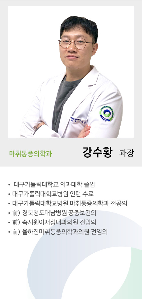 마취통증의학과 나사렛종합병원 | 대표: 김대영 | 사업자번호: 503-90-59791 전화번호: 053-643-1400 | 팩스: 053-643-1405 주소: 대구광역시시 달서구 월배로 97(진천동) 메일: master@nazareth.co.kr Copyright 2020. NAZARETH ALL RIGHTS RESERVED.