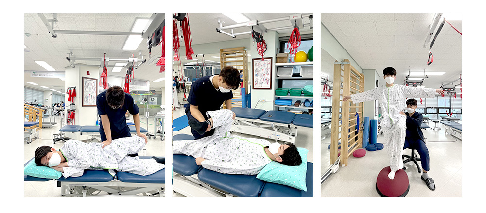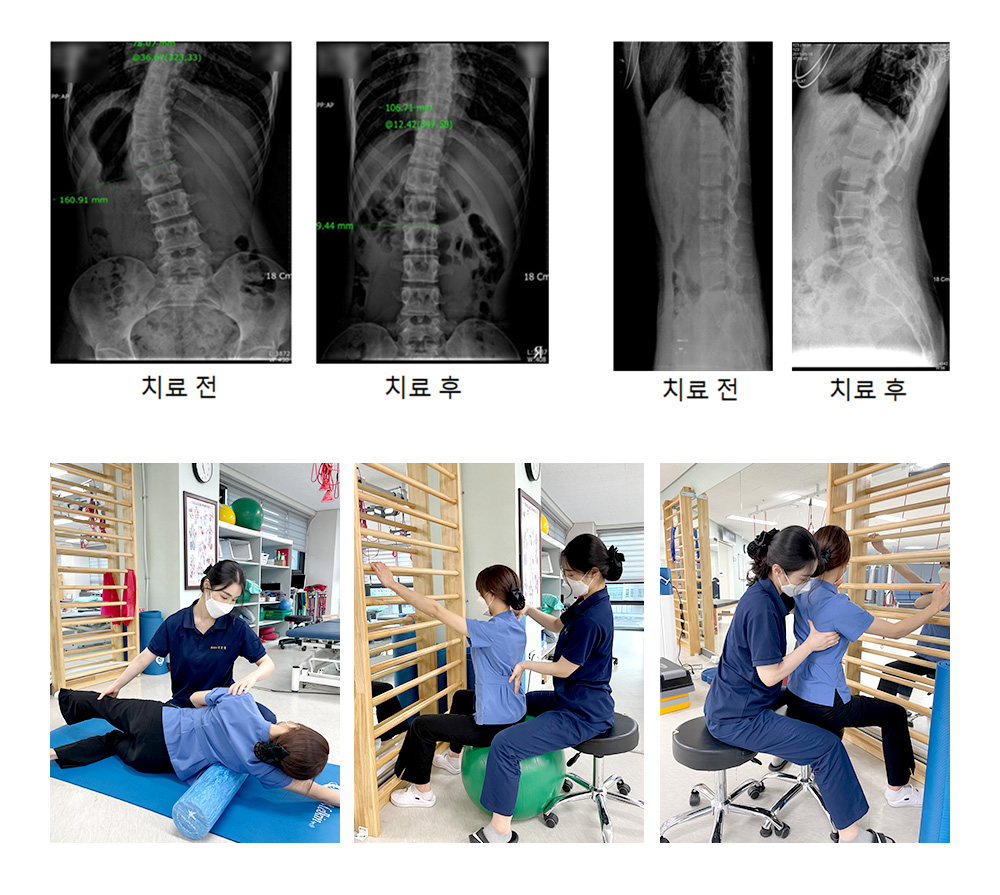 현대사회에서 성인 및 청소년의 척추변형은 다양한 원인에 의해 유발되지만, 척추 구조의 선천적인 문제나 척추질환이 발견되지 않는다면 생활습관 속에 나쁜 자세가 원인으로 의심되는 경우가 많습니다. 특히 근골격계 성장이 빨리 진행되는 성장기는 척추변형이 쉽게 일어나는 한편 교정치료도 성인의 척추교정 치료에 비해 쉽습니다. 이를 방치할 경우 신체의 성장과 함께 변형된 만곡이 진행되어 성인기에 통증을 유발하는 원인이 되며 만약 이 시기에 목, 어깨, 등, 허리통증 및 체력저하 등이 나타날 때까지 무관심 속에 방치된다면 매우 심각한 문제로 발전하게 됩니다. 또한 심리적으로도 집중력이 저하되거나 불안감, 자신감 결여 등 다른 사람에게 주는 인상을 결정하는데도 상당한 영향을 주게 됩니다. 따라서 자라나는 성장기 청소년들은 물론이고 성인들에게도 올바른 자세의 인식에 대한 교육 및 치료는 매우 중요합니다. 그리고 척추변형에 대해 조기에 발견 하고 치료하는 것이 불필요한 수술을 미연에 방지하고 환자에게도 정신적 고통을 덜어줄 수 있는 좋은 기회가 됩니다. 나사렛종합병원 재활센터에서 물리치료사들의 전문지식을 바탕으로 1:1로 행해지는 맞춤식 도수치료로 성장기 학생부터 퇴행이 시작된 성인까지 바른 자세를 유지하실 수 있도록 최선을 다해 도와드리겠습니다. 척추측만증 ![]() ● 척추측만증의 자가 진단 - 거울 봤을 때 어깨 높이, 혹은 골반 높이 다르고 허리가 휘어있음 - 한 쪽 옷깃이 흘러내리거나, 속옷 끈이 자꾸 내려오는 경우 - 바지를 입었을 때 한쪽 바지만 끌리거나 치마를 입었을 때 치마가 자꾸 돌아감 - 숙였을 경우 등이나 허리에 불룩하게 올라오는 부분 생김 ● 척추측만증의 분류 - 비구조적 측만증 : 척추에 구조적 변화가 없고 척추 이외의 다른 원인에 의한 측만증 - 구조적 측만증 : 척추에 구조적 변형으로 인한 측만증 ※구조적 측만증 중 원인을 알 수 없는 특발성 척추측만증이 전체 측만증의 80% 이상 ● 척추측만증의 증상 - 허리통증, 목통증, 어깨 통증(성장기의 경우 통증이 없을 수도 있음) - 성장 불균형 - 편측성 평발 - 흉곽과 폐의 발달 방해 - 호흡근과 심폐기능 약화로 인한 체력 저하 ● 척추측만증의 치료 - 통증 및 자세에 대한 평가 (정확한 진단을 위해 X-ray 촬영 필요) - 각도 및 타입에 따른 운동 프로그램 설정 - 척추의 움직임 개선 및 이완 - 교정을 위한 호흡 교육, 척추측만증 교정을 위한 유럽식 슈로스 운동치료 - 바른 자세 유지를 위한 홈프로그램 및 생활습관 교육 ● (슈로스 운동치료 ; Schroth - 3dimentional scoliosis therapy) 척추측만증은 호흡기능을 약하게 하므로 호흡치료가 필수이며, 나사렛종합병원에서 시행하고 있는 슈로스운동치료는 독일의 카타리나슈로스(Katharina Schroth)에 의해 개발된 치료방법으로 3차원적 측만증치료의 기초적인 법칙을 척추 결함에 적용하여 치료하는 물리치료적인 접근법입니다. 측만증 환자에게 전형적으로 나타나는 3차원적인 면(시상면, 전두면, 수평면)에서의 비틀림(torsion)과 척추 및 흉곽과 골반부에 역3차원적(역회전(de-rotation), 반대굴곡(counter-flexion), 재후만(re-kyphosis))으로 접근하여 구조와 기능을 회복시키는 운동방법입니다. ![]() ![]() 경추(목뼈)가 정상적인 곡선인 C자 형태를 유지하지 못하고 일자로 변형되는 질환으로 모양이 거북이 목과 닮았다고 하여 거북목 증후군이라고 합니다. 잘못된 생활 습관에 의한 경추의 변형과 고개를 앞으로 숙인 상태나 뒤로 젖힌 상태와 같이 한쪽으로 쏠린 상태로 장시간 일을 하게 되면 목과 어깨 근육에 과도한 긴장을 야기해 목의 통증, 만성피로, 두통 등을 일으키며 시간이 흐르면 만성적 자극에 의해 목뼈의 정상곡선 C커브 → 일자형 → 거북목으로 변형 됩니다. 경추가 굳어지면서 혈관, 신경에도 영향을 주게 되어 목이 뻣뻣해지고 어깨가 결리고 손발이 저리는 등의 증상을 호소하게 됩니다. 직장인과 주부 뿐만 아니라 성장기의 학생에게도 호발하며 방치할 경우 집중력이 떨어지며 관절 기능에 이상, 또는 병적 디스크 질환으로 발전 수 있기에 조기에 치료가 필요합니다. ● 일자목, 거북목의 원인 - 평소 목을 앞으로 쭉 내밀고 있는 자세습관 - 모니터를 볼 때 턱을 앞으로 빼는 습관이 있는 경우 - 스마트폰, 책, 신문을 볼 때 고개를 숙이고 있는 습관 - 바닥에 고개를 떨구고 신문이나 책을 보는 경우 - 지나치게 높은 베개를 사용하는 경우 - 외상이나 교통사고 후 ● 일자목, 거북목의 증상 - 관절 기능부전 - 병적 디스크 질환 - 퇴행성 관절질환 - 만성두통, 긴장성두통 - 목덜미가 뻣뻣해짐 - 눈의 피로 - 어깨와 등의 통증 - 뒷목 통증, 팔 저림 - 작업 능률이 하향, 만성피로 - 불면증, 수면 시 자주 깸 - 베개 높이가 낮아지고, 베개를 자꾸 바꿔도 편하지 않음 ●일자목, 거북목의 치료 일자목은 처음부터 뼈에 문제가 생긴 병이라기보다 습관에 의해 근육이 경직되어 나타나는 증상입니다.따라서 일자목이 된 원인 질환이나 습관이 해결되면 자연스럽게 목의 C커브를 회복하면서 통증도 제거할 수 있습니다. 고개가 1cm 빠질 때마다 경추에는 2~3kg의 하중