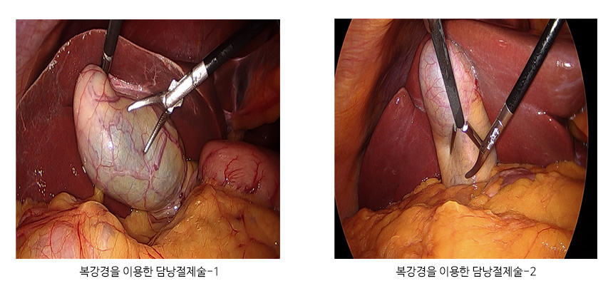 담석증을 치료하기 위해서는 수술적 치료와 내시경적 치료를 시행하고 있으며, 수술적 치료는 복강경을 이용하여 담낭절제술을 시행하고, 내시경적 치료는 내시경적 역행성 담도·췌관 조영술을 시행하여 내시경적 담석 제거술을 시행합니다.